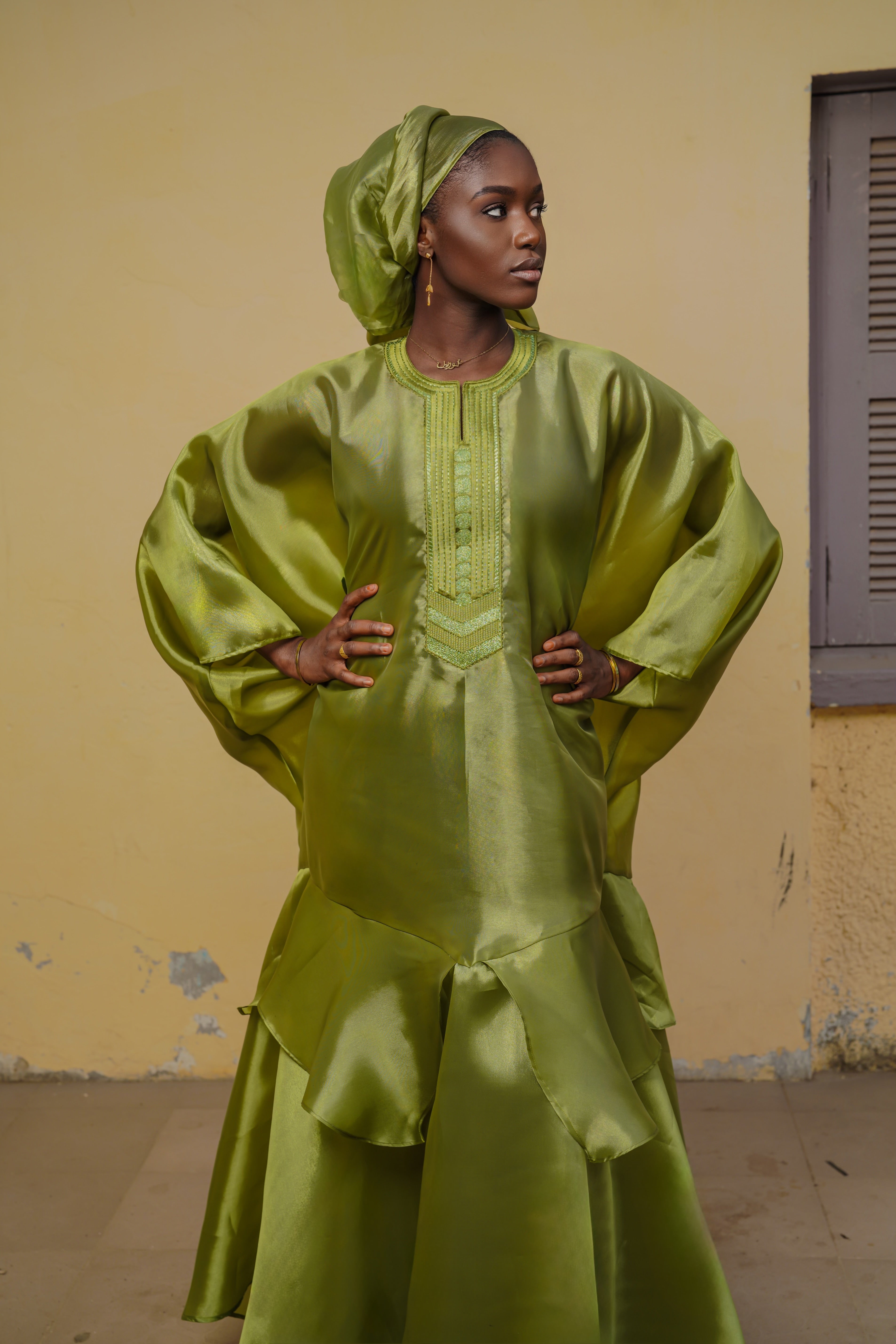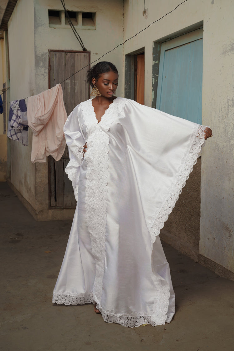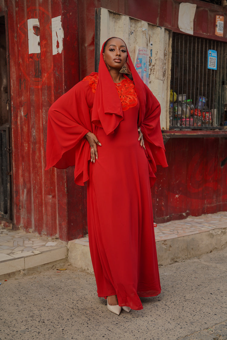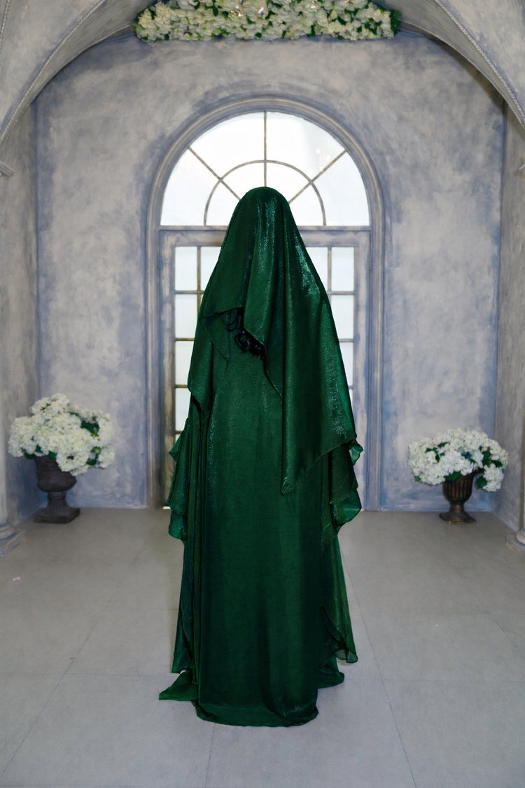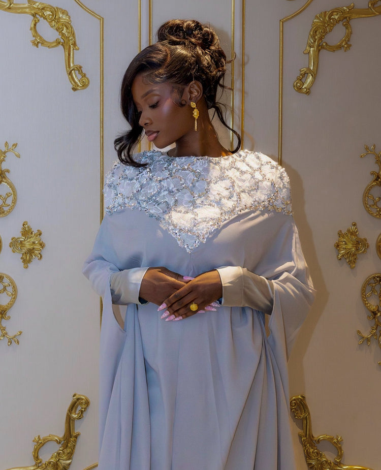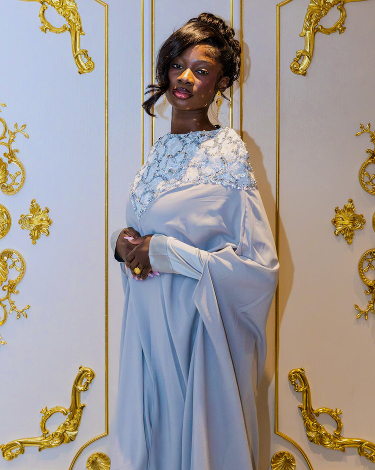 The Zohra Dress is a statement piece designed to stand out with ease, featuring a fluid silhouette and refined details that make it perfect for Eid celebrations and special occasions.