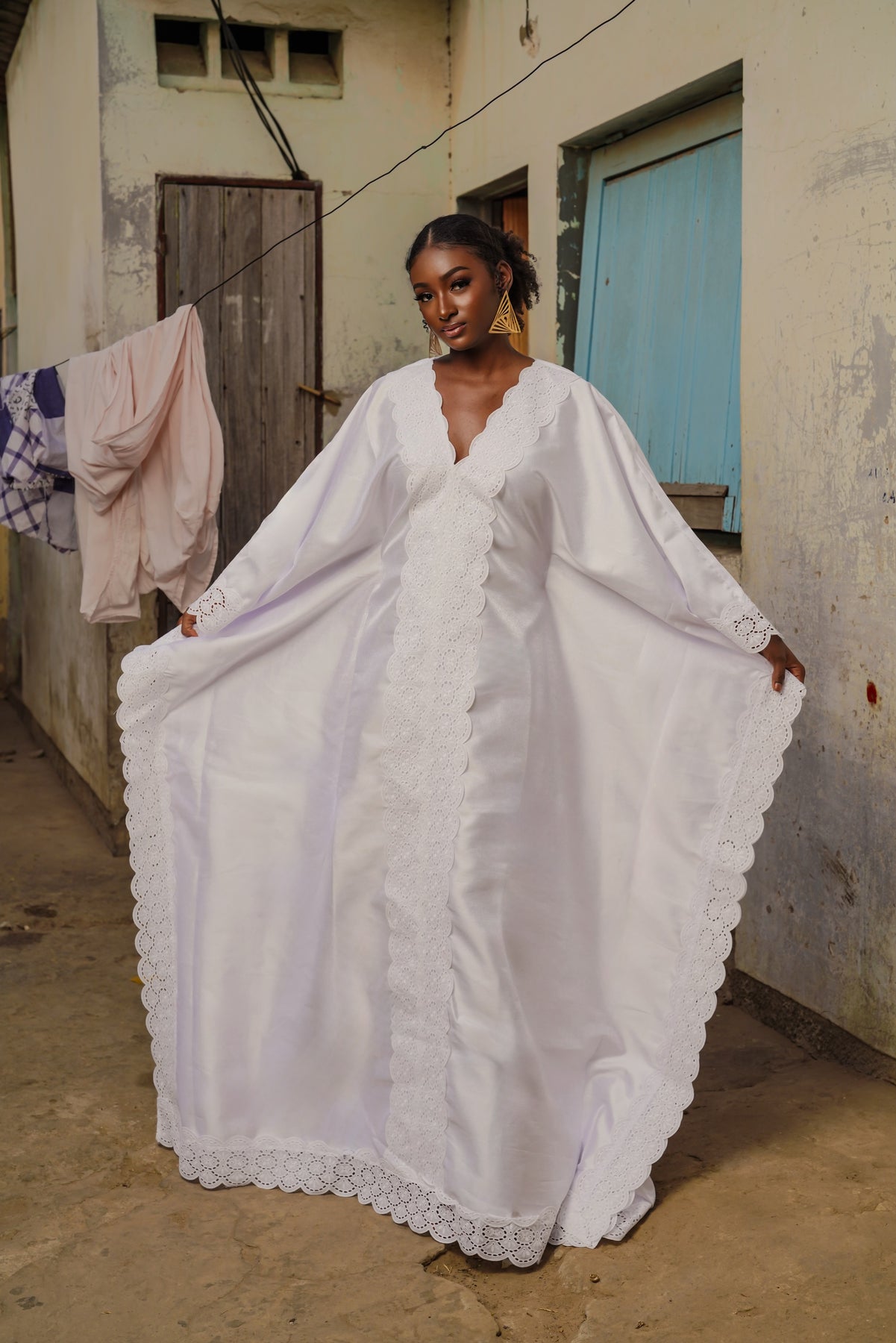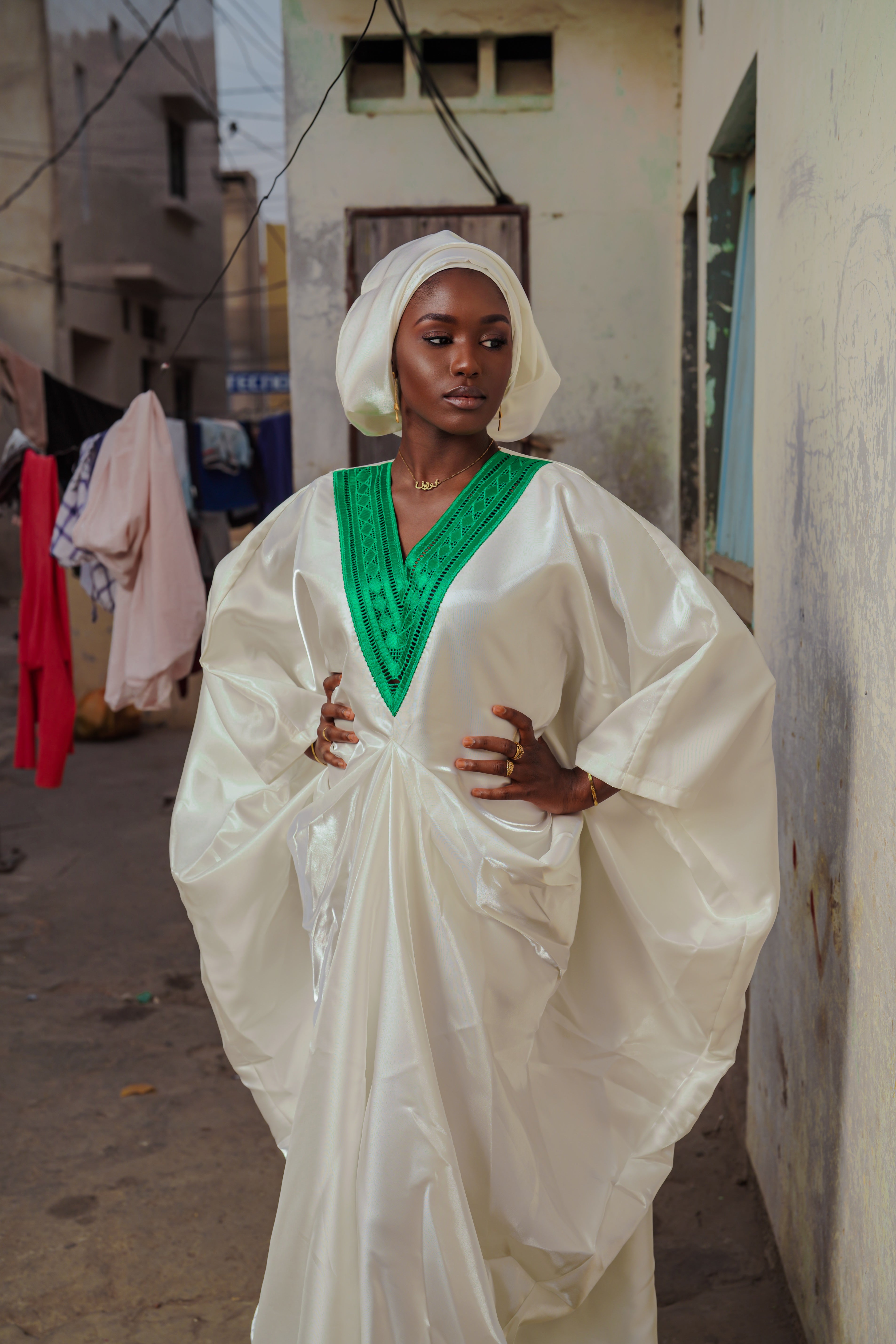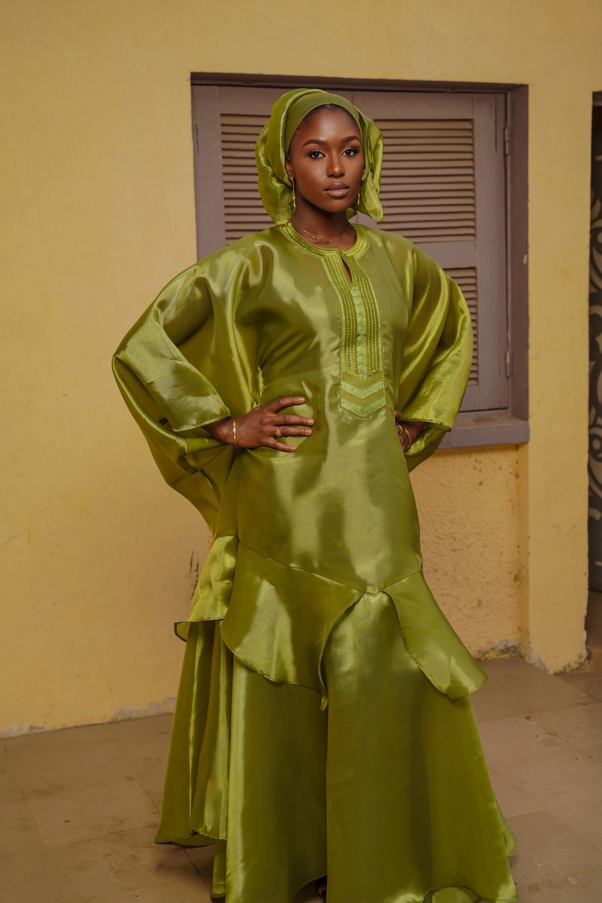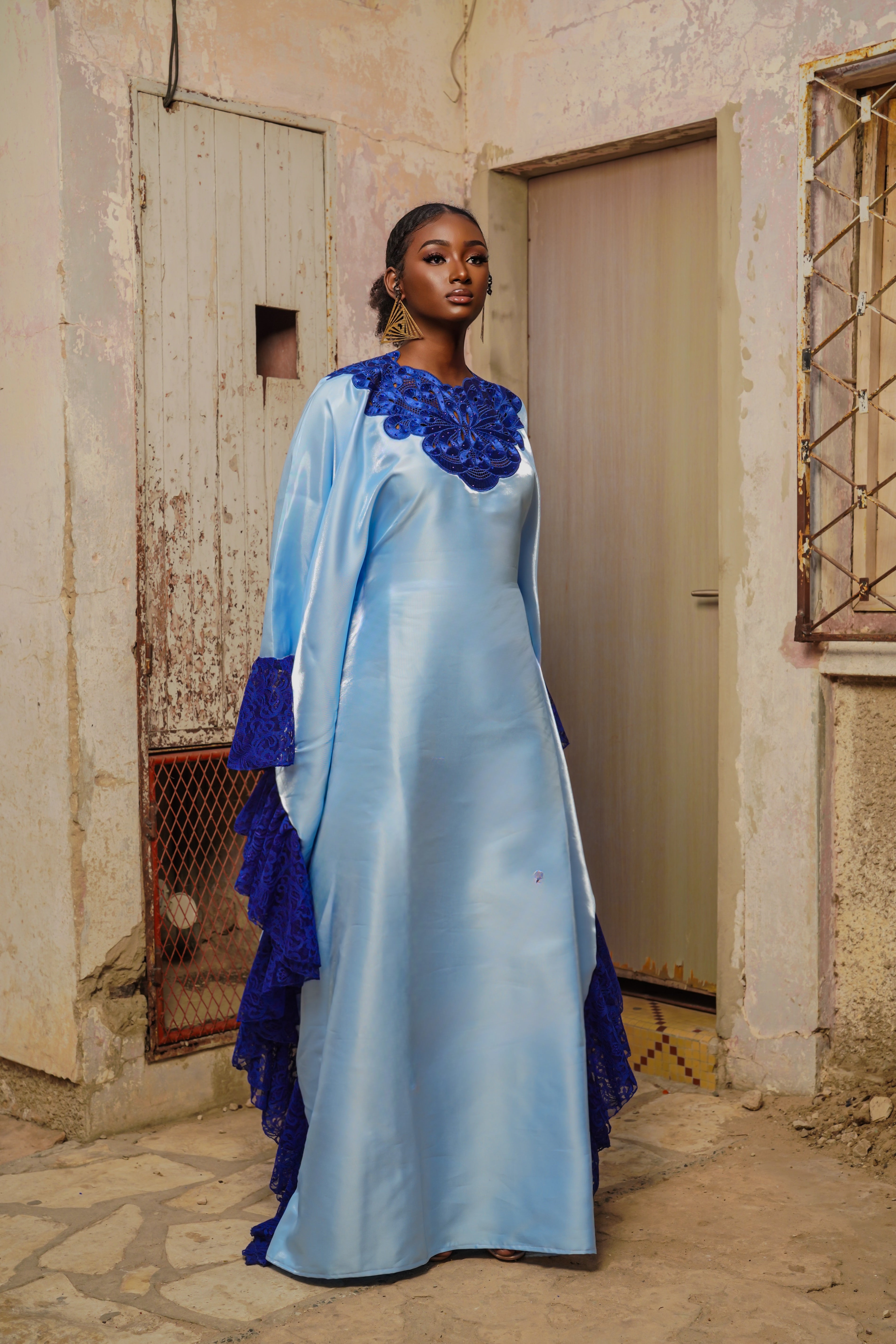 The Zohra Dress is a statement piece designed to stand out with ease, featuring a fluid silhouette and refined details that make it perfect for Eid celebrations and special occasions.